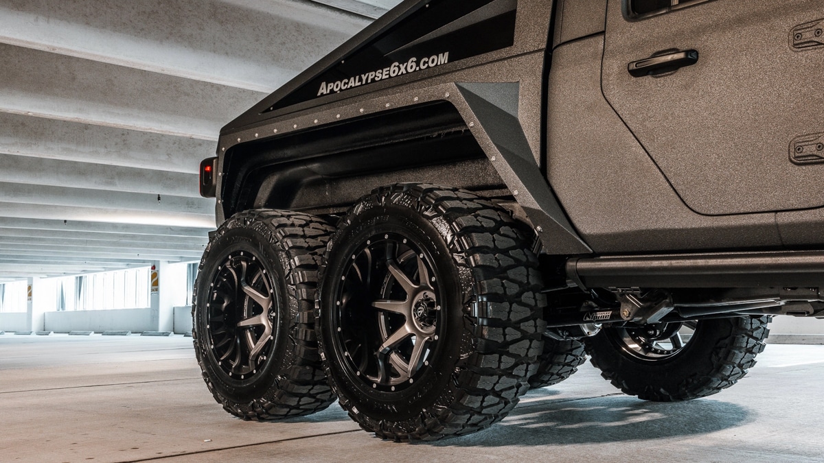 Apocalypse Manufacturing, le préparateur basé en Floride, réplique avec une Jeep Gladiator dénommée HellFire à six roues motrices offrant un système de transmission exclusif et une suspension active. Si 3 motorisations sont proposées (turbo diesel, LS3 de 500 ch), on retiendra le V8 Hellcat développant 707 ch.