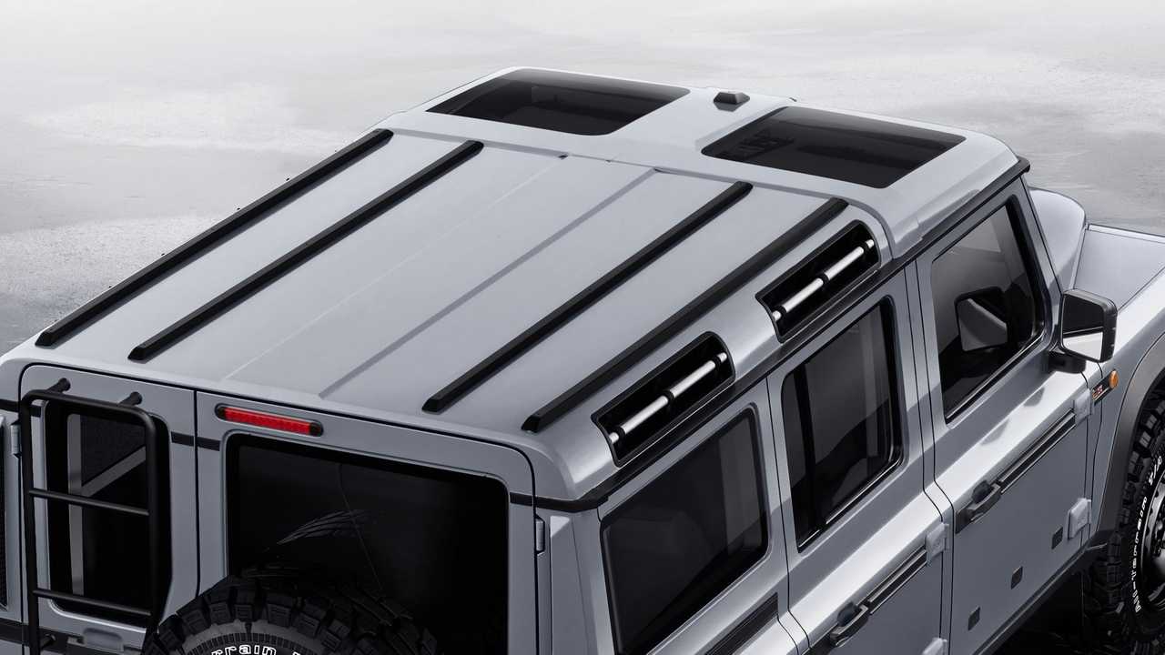 Entre quelques ressemblances avec le G de Mercedes et de faux air d’Iveco PS10, Sir Radcliffe à été jusqu’à reprendre à son compte les petites fenêtres de toit que les fans connaissent sous le nom d’Alpine Window.