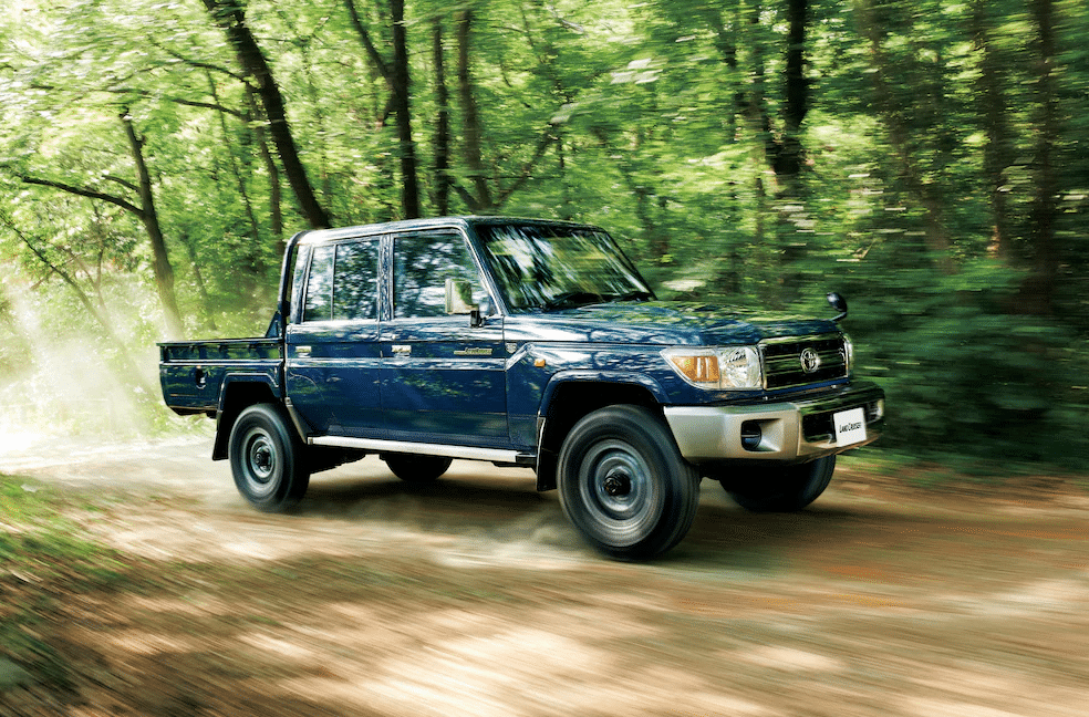 Toyota Land Cruiser 70 -Depuis 1959, l’indestructible Land Cruiser ne flanche pas. Un succès assuré d’une part par son robuste châssis et des suspensions lui permettant une capacité de charge unique comme ses aptitudes tout-terrain.
