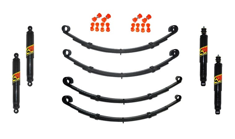 Trouvez la qualité à petit prix et transformez votre Samuraï en franchisseur grâce à Euro4x4parts. Petit et léger, le Suzuki Samuraï est une référence parmi les véhicules tout-terrain. Afin d’améliorer ses capacités, Euro4x4parts propose de nouveaux kits de rehausse de hautes qualités composés de 4 lames, de 4 amortisseurs Tough Dog et d’un kit de bagues polyuréthanes complet. Ces kits sont disponibles pour les modèles avec motorisation essence ou diesel en rehausse de 40mm ou 75mm.