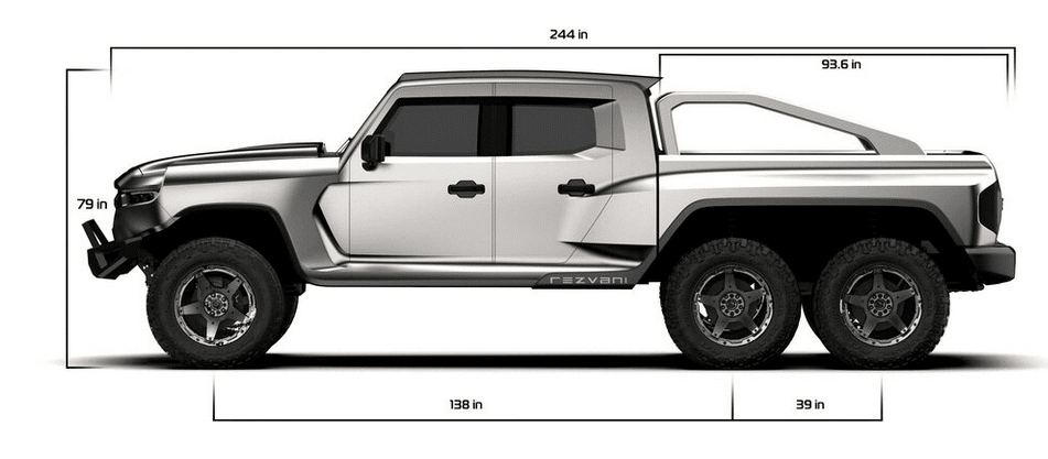 Ce Hercules 6 × 6 présenté comme le « Dieu de tous les Pick up» semble apparemment basé sur le Jeep Gladiator et reprend le principe de son  fameux prédécesseur, le « Tank », adoptant un empattement de 2438 mm et 3 ponts.Le constructeur américain Rezvani lance son nouveau monstre dénommé Hercules. Un 6 × 6